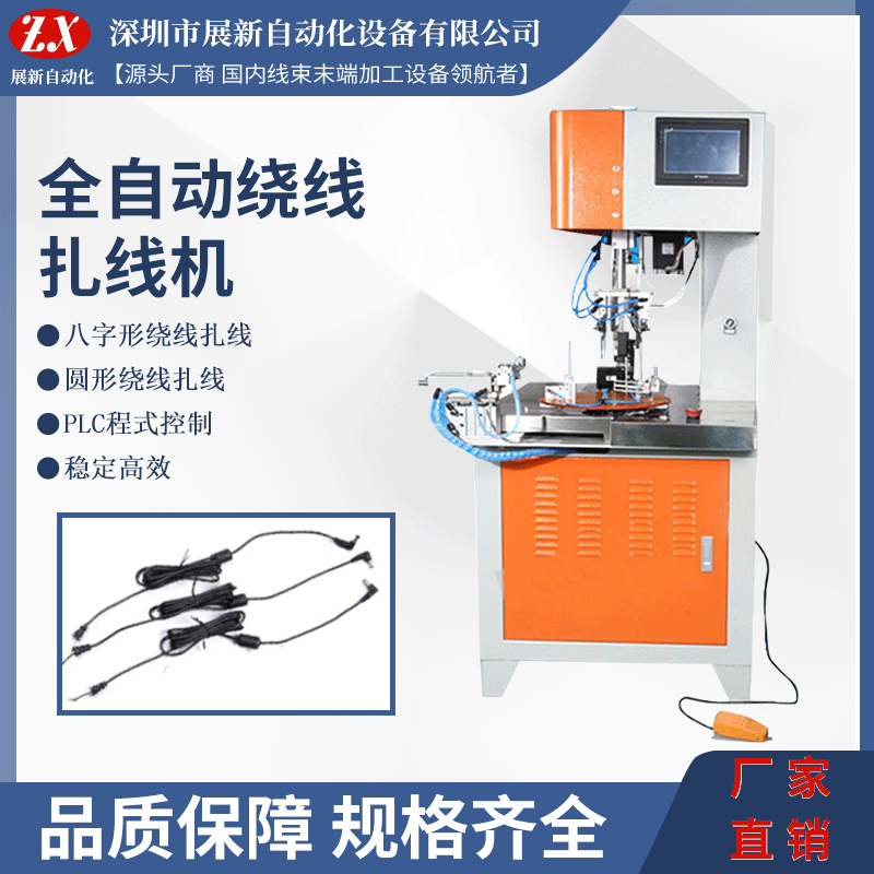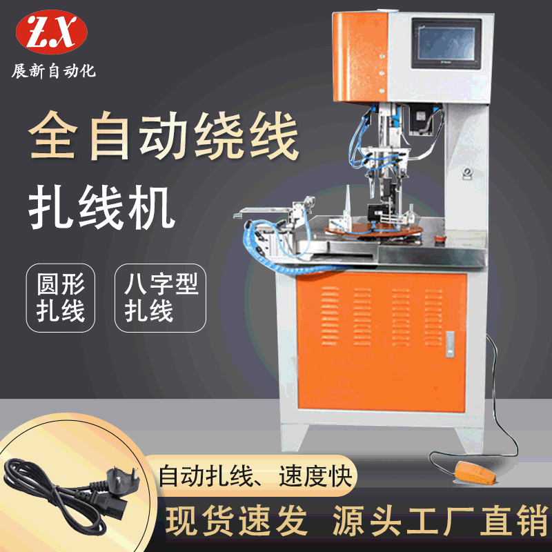 本機可大大降低員工疲勞強度,提高工作效率,節(jié)省扎帶,員工只需將線放在繞線盤上,踩踏腳踏開關(guān)自動繞線,機器自動將繞好的線放到扎線口處,機器自動扎帶。