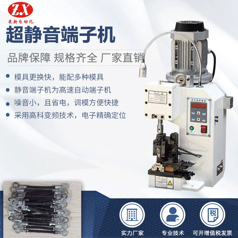 2、靜音端子機(jī)為高速自動(dòng)端子機(jī),模具更換快,速度穩(wěn)定,能配多種模具,機(jī)臺(tái)操作簡單維修容易,針對(duì)高產(chǎn)量低維修客戶節(jié)省其故障期所產(chǎn)生的成本浪費(fèi)而設(shè)計(jì),且外形美觀、優(yōu)雅,讓廠內(nèi)更覺得高尚先進(jìn)。
