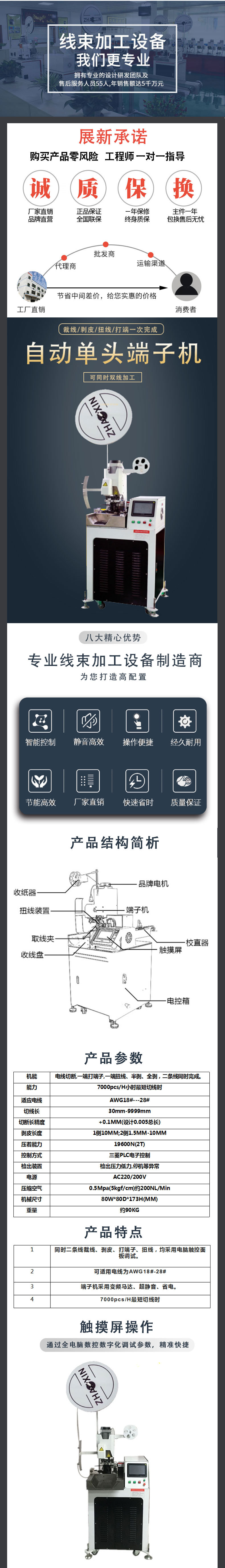 深圳市展新自動化設(shè)備有限公司成立于2003年,是一家專業(yè)生產(chǎn)線束末端加工設(shè)備的企業(yè),源于臺灣的生產(chǎn)技術(shù),以及臺灣的專業(yè)的技術(shù)人員,專業(yè)制造:全自動雙頭端子機,全自動單頭端子機,全自動伺服端子機,全自動伺服沾錫機(單/雙頭),新能源壓接機等自動化設(shè)備。為繼電器行業(yè),電子電器行業(yè),汽車線束行業(yè),新能源線束加工等等,提升產(chǎn)業(yè)結(jié)構(gòu)起到巨大作用,為廈門宏發(fā)股份、河北申科集團、順德美的集團、湖南威勝集團、三一重能、珠海格力集團以及海內(nèi)外各大型電子生產(chǎn)廠商提供配套優(yōu)質(zhì)的產(chǎn)品及完善的售后服務(wù),已全面通過SGS認(rèn)證,ISO質(zhì)量認(rèn)證。 客戶遍布中國廣東、北京、上海、浙江、江蘇、湖南、山東.印度、中東、巴西等東南亞以及歐美市場。展新自動化,因為一顆顆專注之心;為客戶提供優(yōu)質(zhì)的設(shè)備!為客戶創(chuàng)造價值,在線束末端加工設(shè)備上精益求精 ! 整合國際資源,拓展海外市場,放眼未來,展新自動化將繼續(xù)保持精準(zhǔn)的技術(shù)創(chuàng)新的精心,敬業(yè)的態(tài)度,再創(chuàng)新的輝煌 !