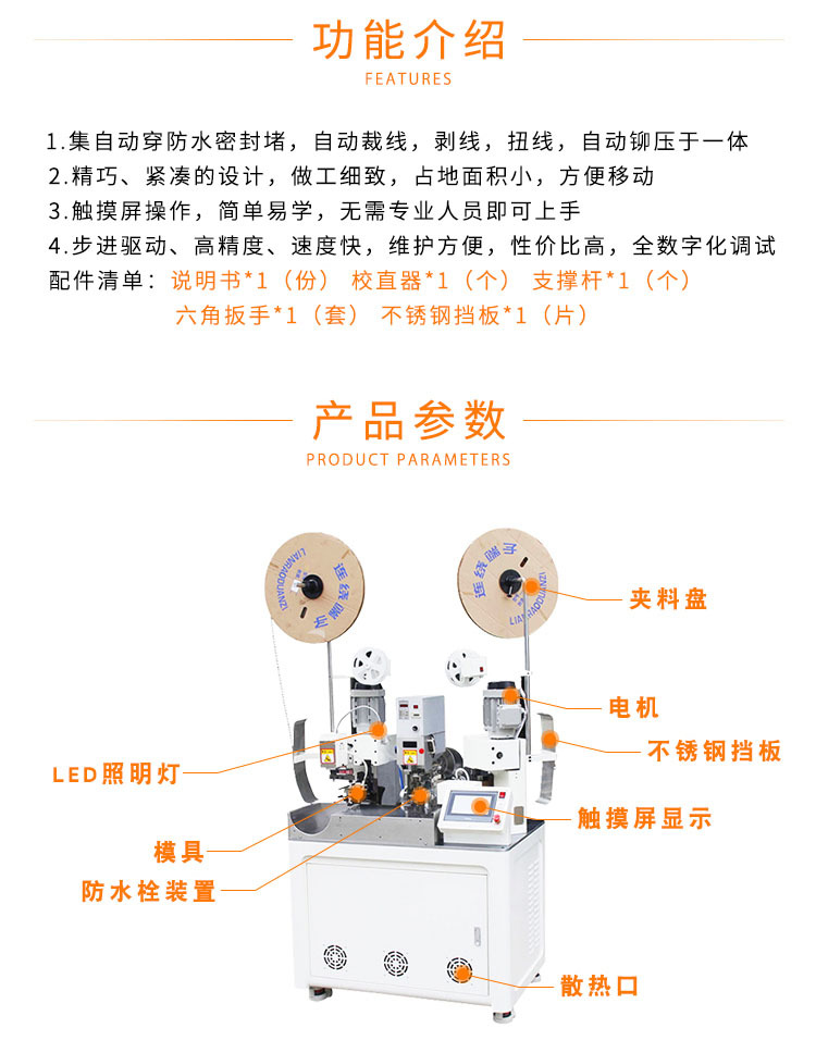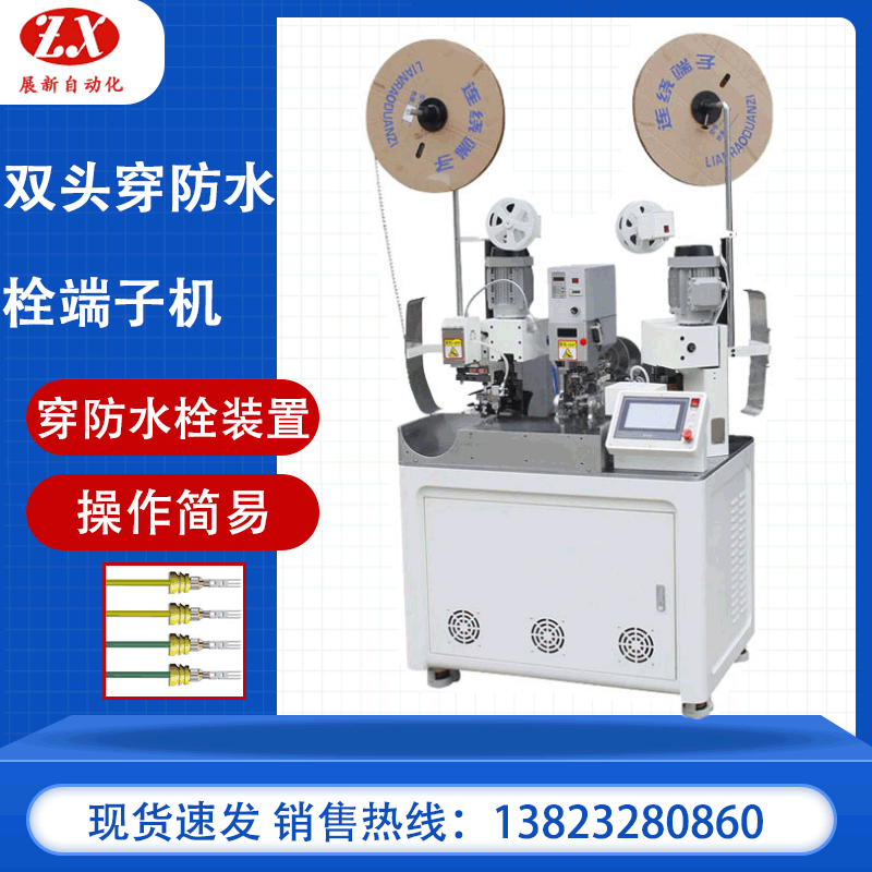 全自動單雙頭穿防水栓端子機(jī)-單線雙線壓接機(jī)-自動剝線機(jī)